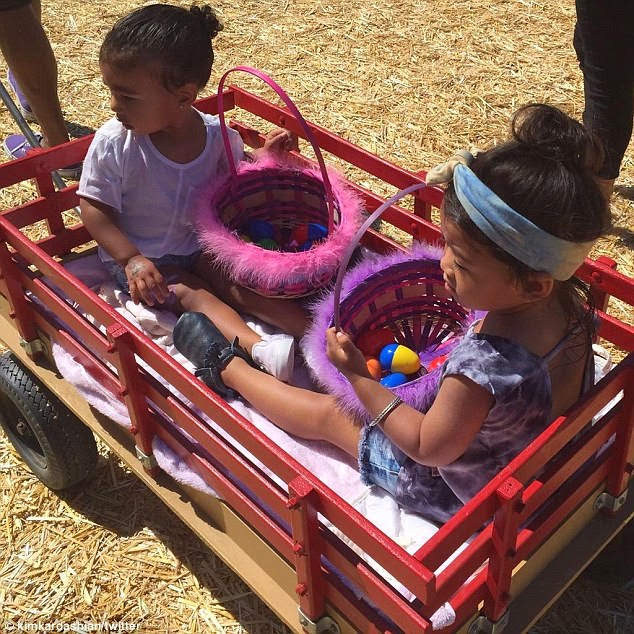 The 34-year-old shared a few snaps of her 21-month-old daughter North looking for eggs during an Easter egg hunt with the caption 'My baby girl on the hunt for Easter eggs at the farm! #PerfectSunday #GettingReadyForNextWeek #SpringTimeEasterFestival.'