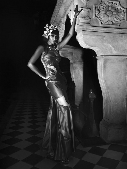 Clad in haute couture, the 59-year-old model (yes you read right) shows off her slim physique and poised posture for the cameras in an Asian -themed Old Hollywood-esque shoot.